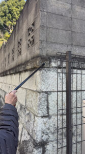 11月24日は高低差が大きな沼袋1〜2丁目。大谷石やブロックの塀が高く、地震や豪雨で被害が拡大しないか心配されます。
