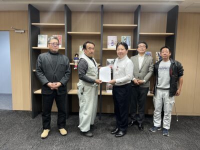 11月14日、酒井直人区長に要望書を提出。実施を求めるとともに、建設産業の現状について報告。認識を共有しました。